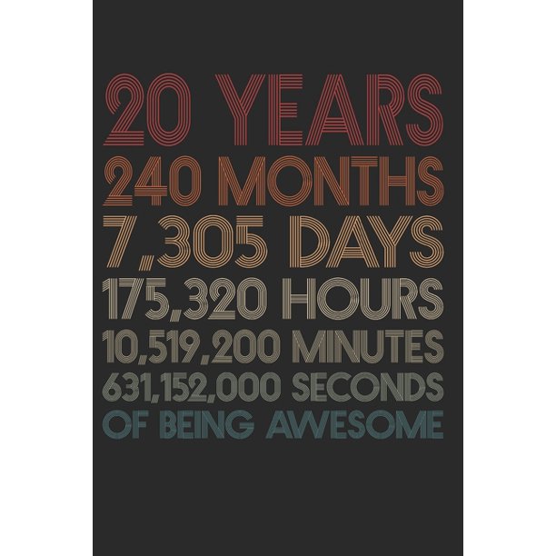 20 Years Of Being Awesome 240 Months 20 Year Old 20th Birthday Gift For 20 Year Day Minute Second Birthday Gift For Man Woman Blank Lined Vintage Notebook Journal For Writing Notes 6x9